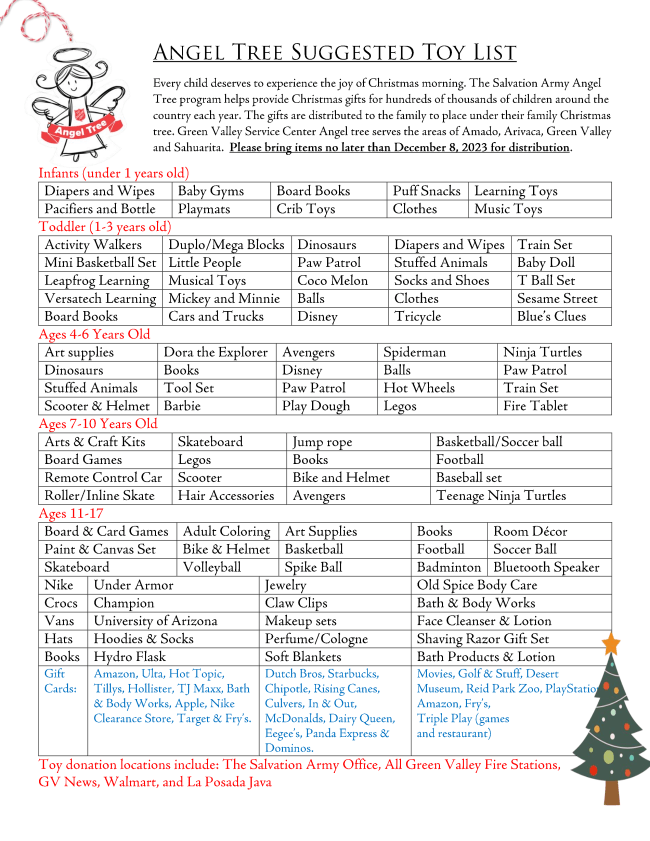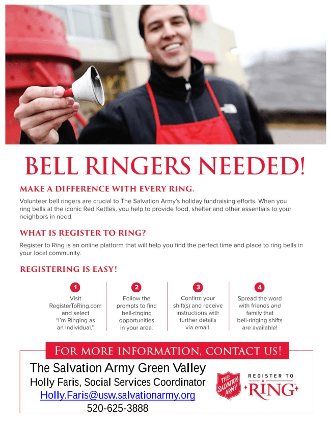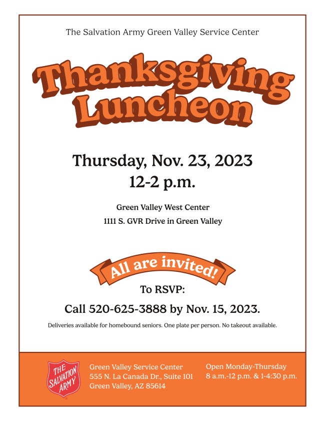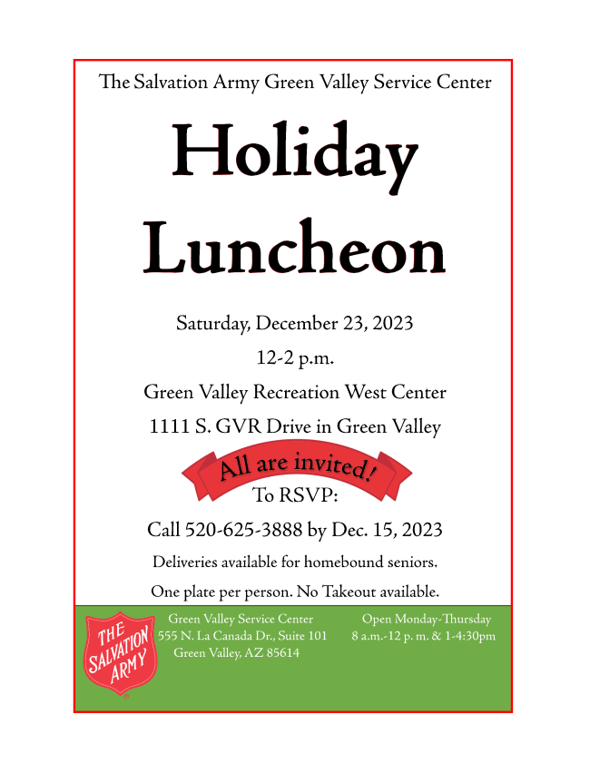 Bring a non-perishable Donation for the Green Valley and Sahuarita Food Banks